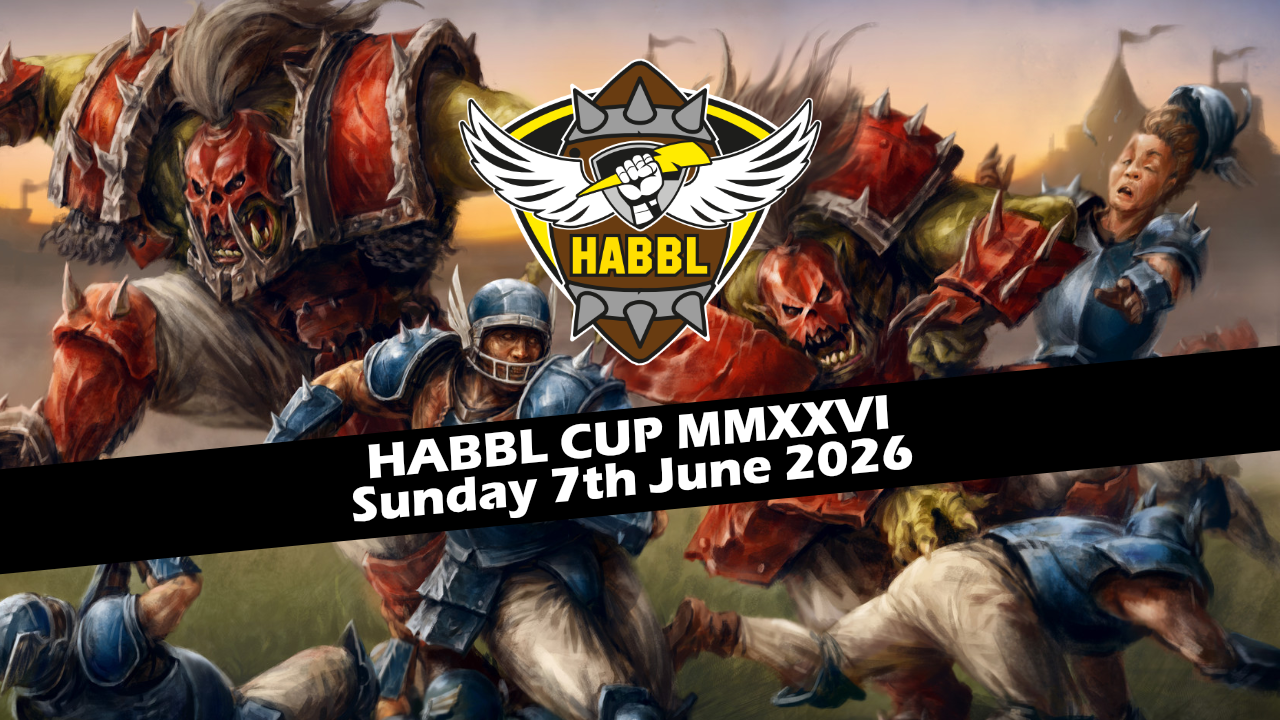 3 games of brutal Bloodbowl action over a single day tournament. Who will rise to the top and add their name to the prestigious HABBL Cup? And who will take home a new wooden kitchen implement!